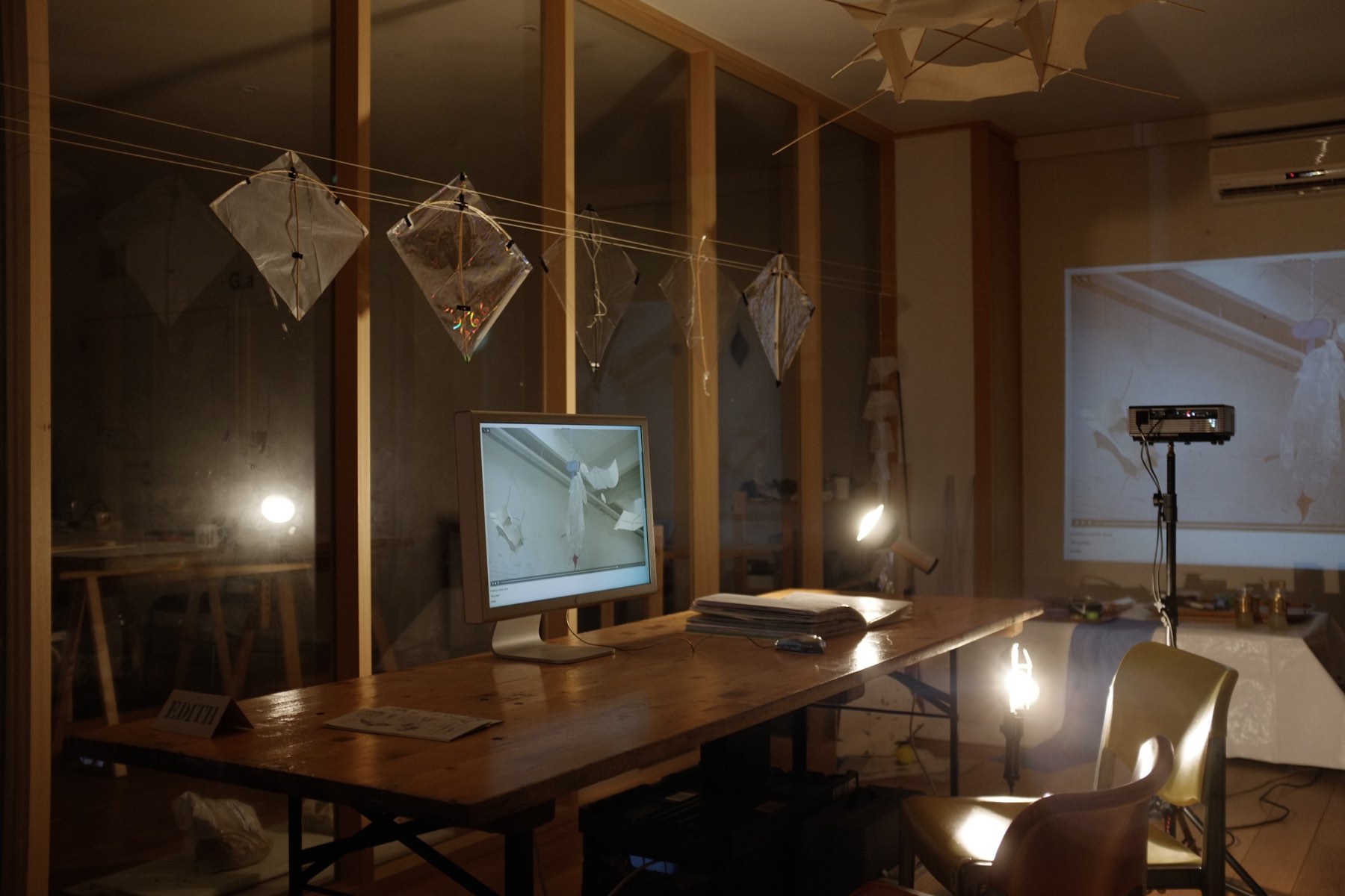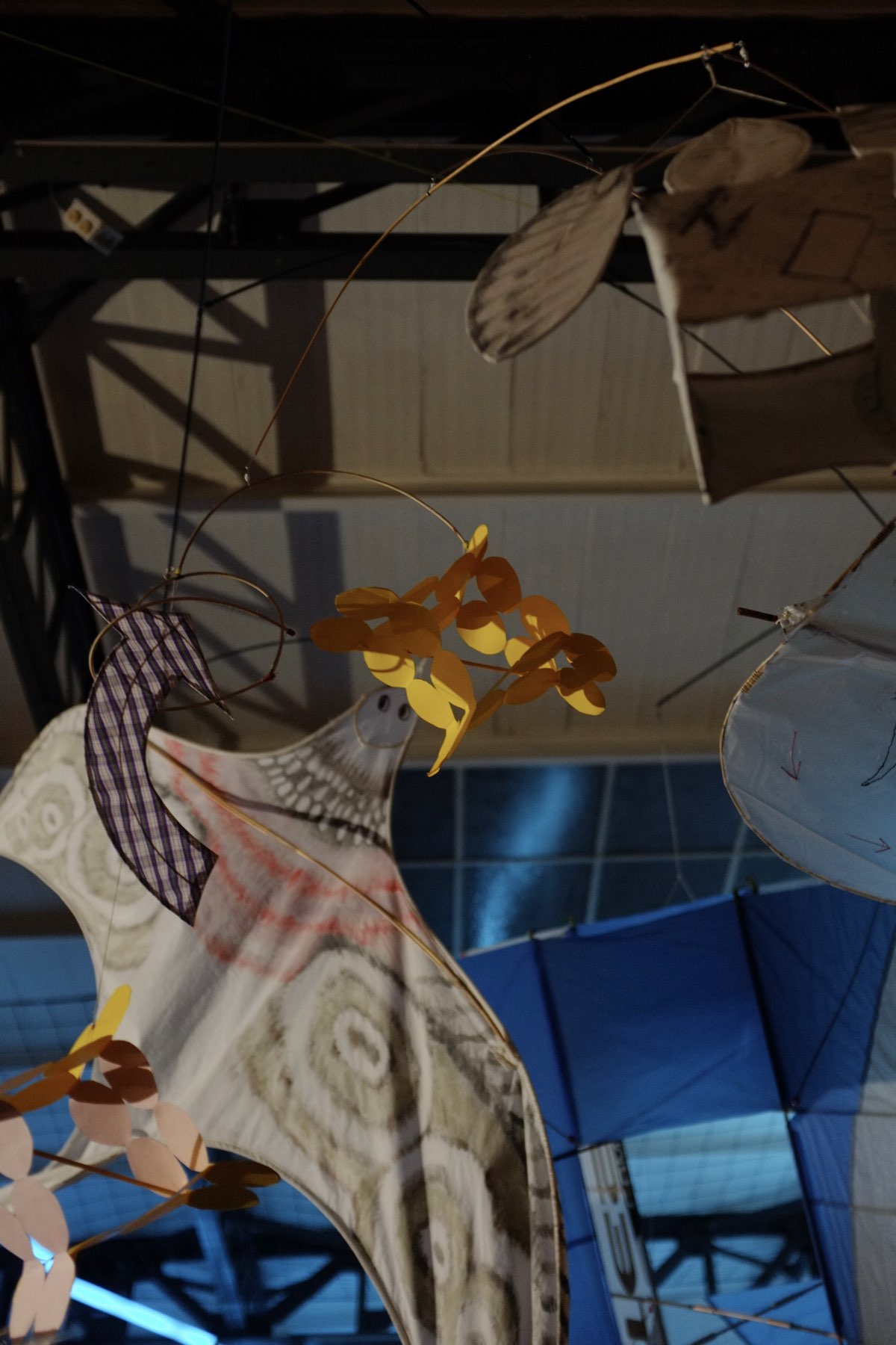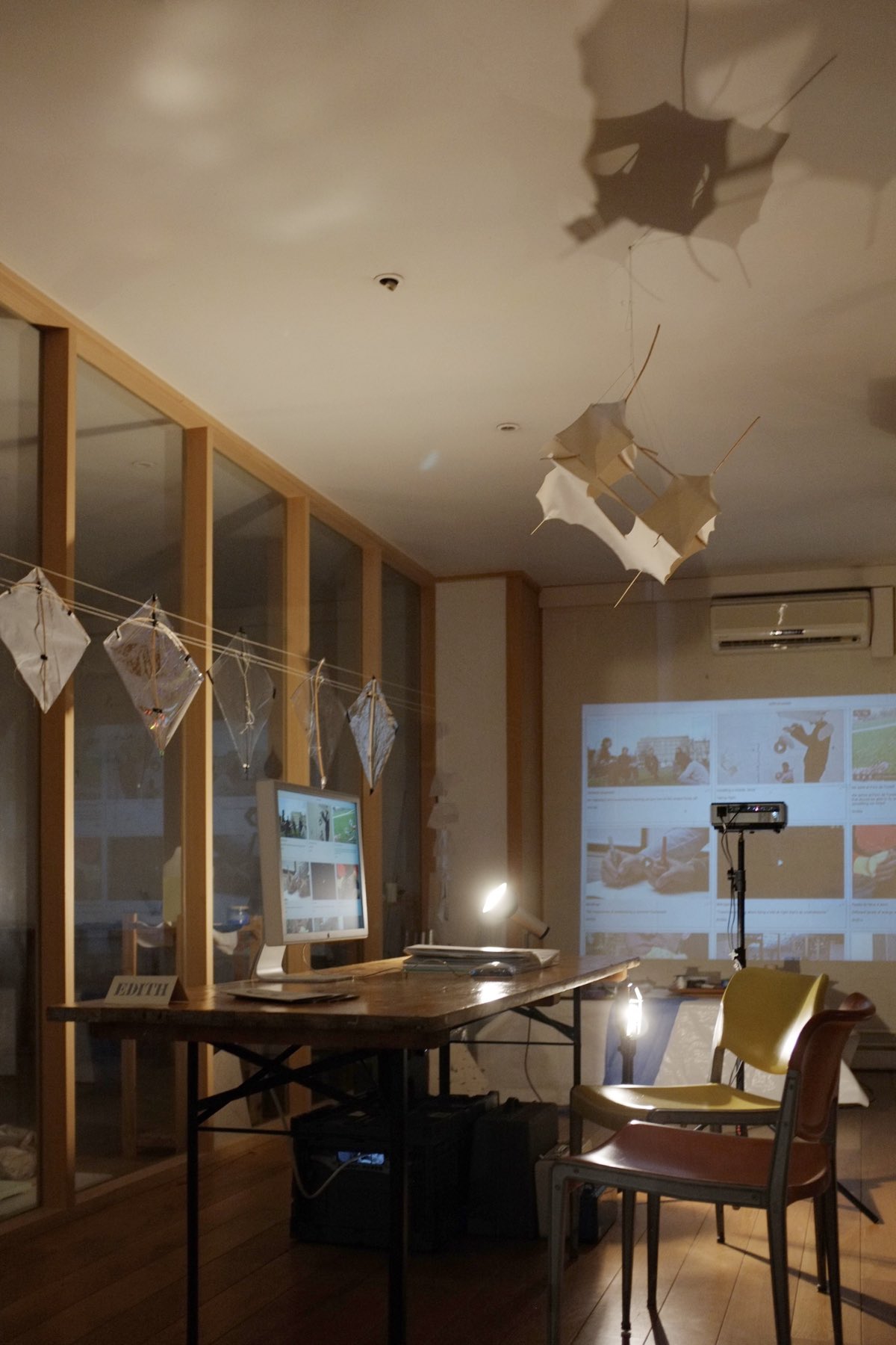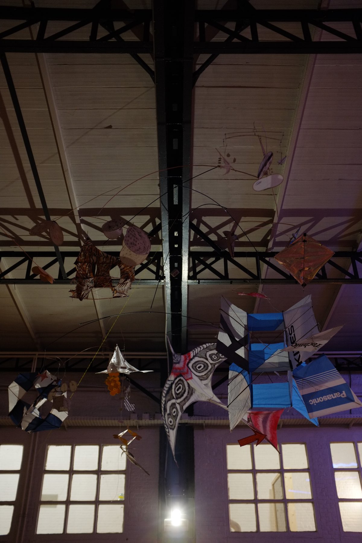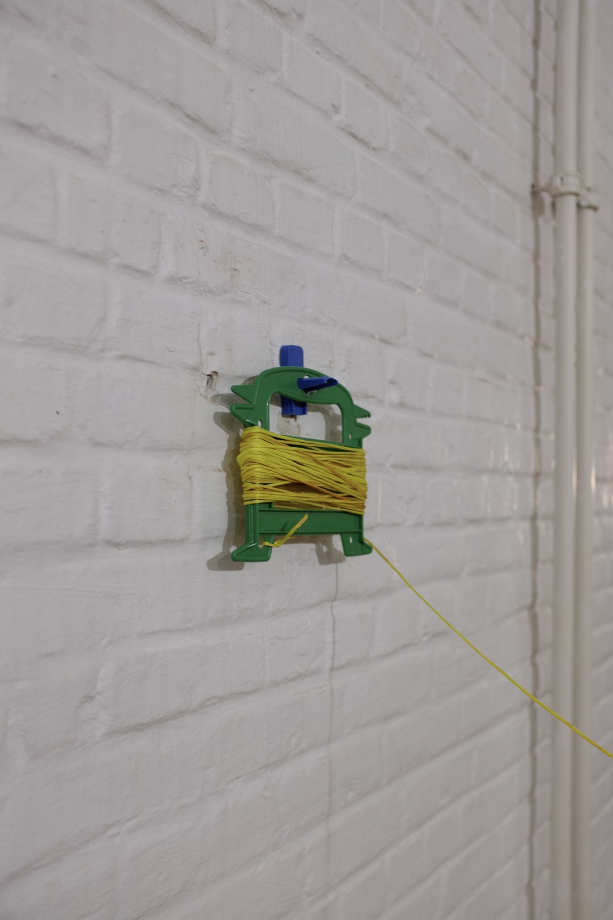 For the last month, Edith has been making kites — collected here as a mobile, a suspended simulation of flight in the fictional sky of the gallery. A mobile is assembled from the bottom up and from the periphery to the centre, its balance found only through negotiation between constructors mediated by gravity. Stranded in this bardo, some of the kites may soon take flight.